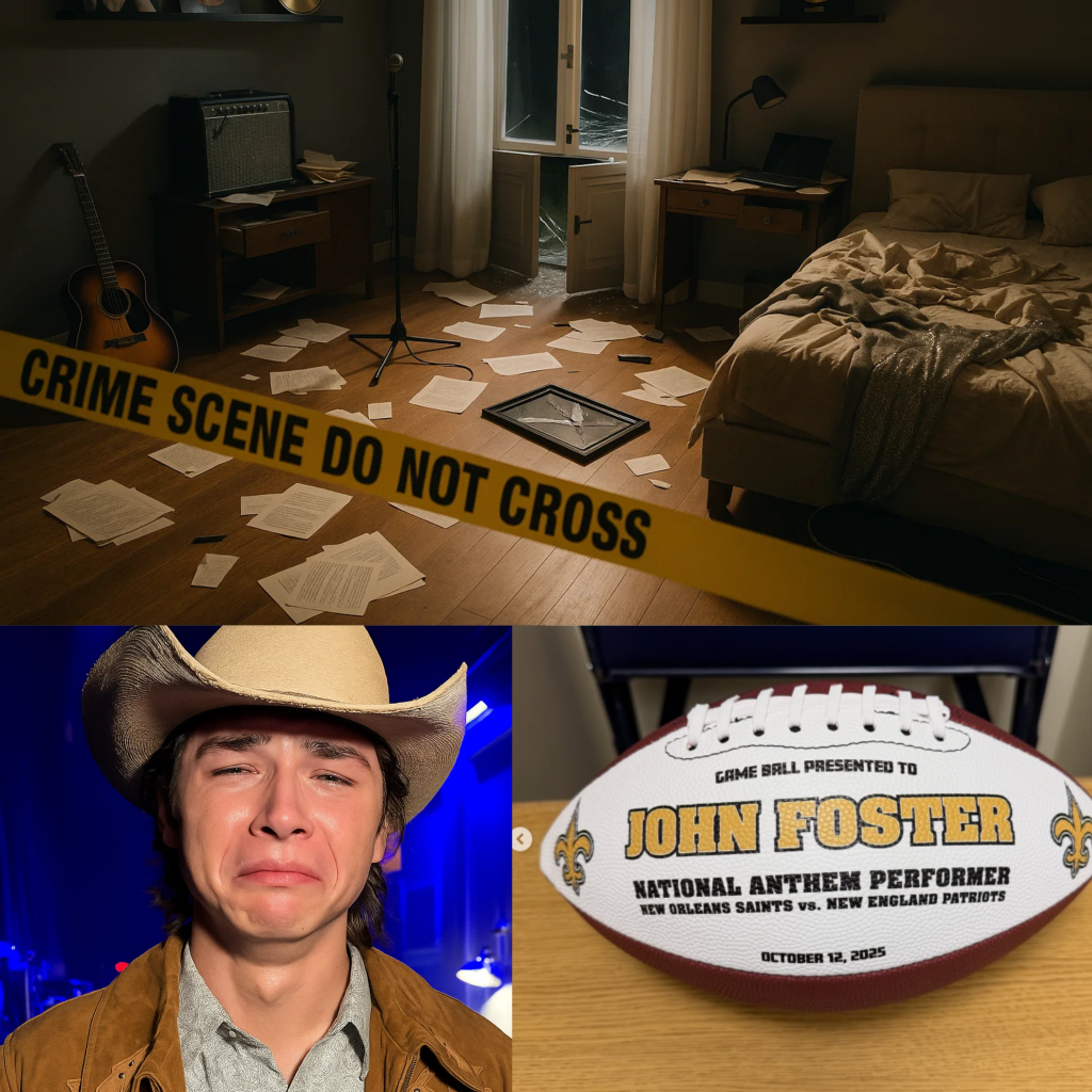 Late last night, Foster’s Nashville home was broken into — and among the stolen items was something money can’t buy: the honorary game ball presented to him by the New Orleans Saints after his unforgettable national anthem performance at the Mercedes-Benz Superdome earlier this year.