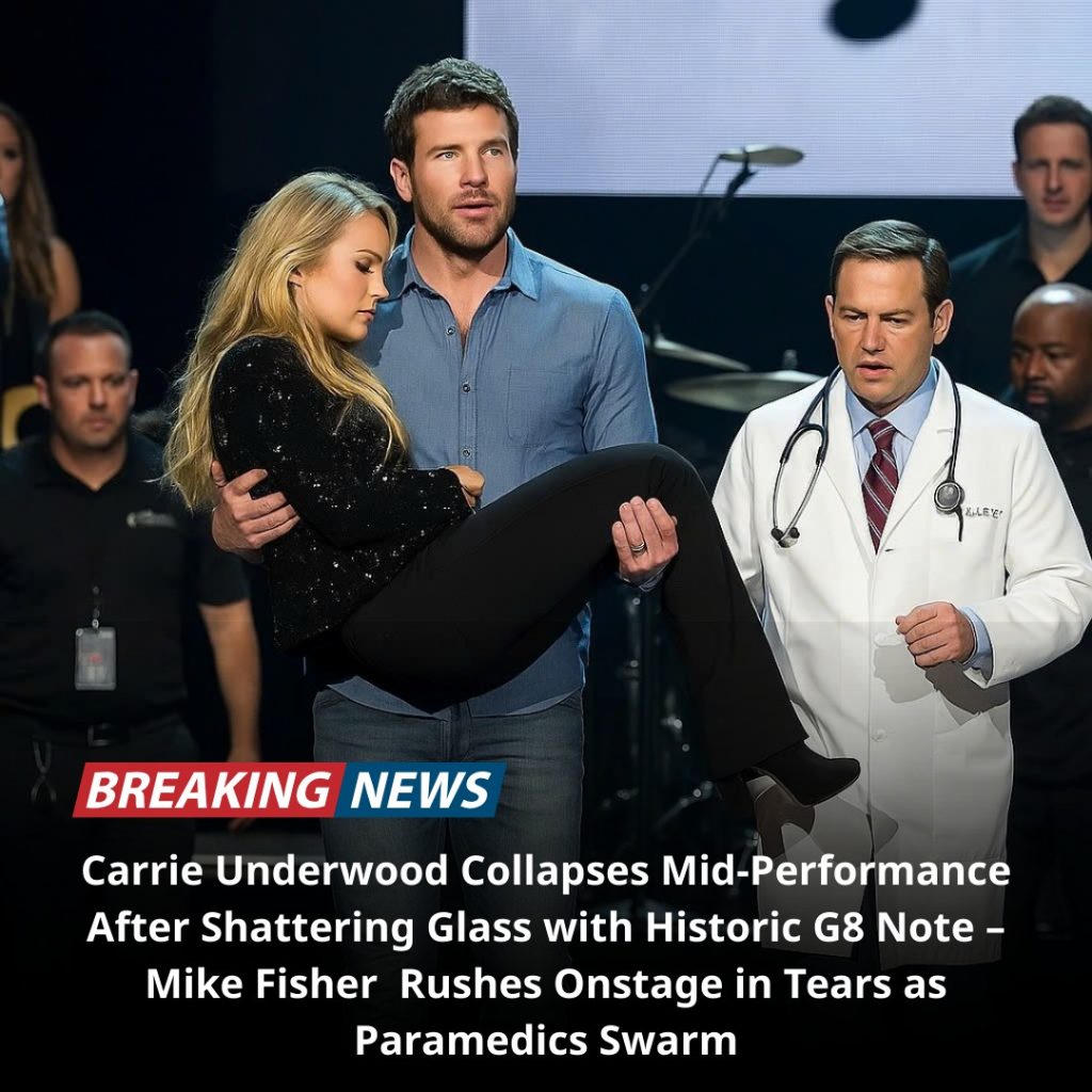 What began as one of the greatest vocal moments of Carrieâs career ended in the most frightening seconds her fans have ever witnessed. And as emergency lights flashed, her husband Mike Fisher sprinted toward her, lifting her into his arms as she faded from consciousness.