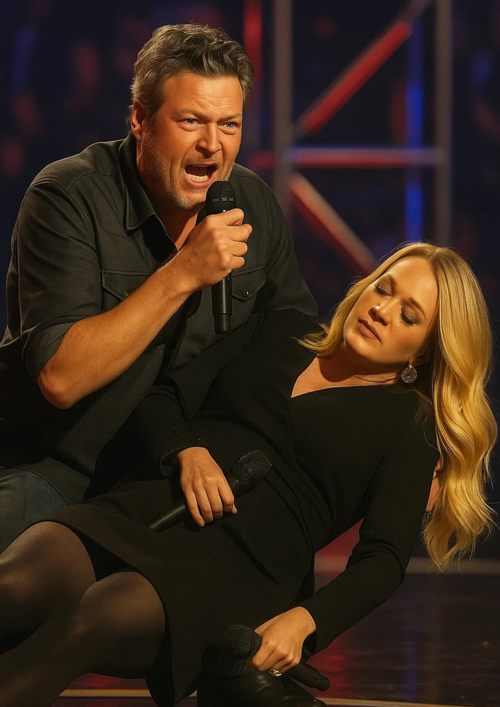 Within seconds, Blake Shelton sprinted to her side. One fan’s video shows him sliding onto his knees, shouting her name, frantically waving toward backstage and yelling for medical staff.