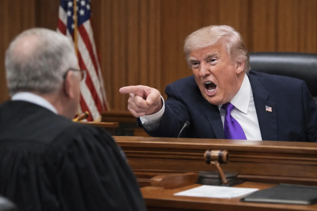 According to observers present during the fictional proceeding, the situation escalated within seconds after the judge finalized the order authorizing authorities to secure several remaining properties and financial holdings connected to Trump’s business empire.