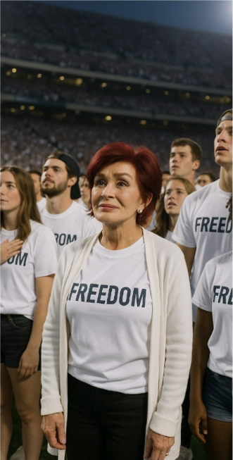 The handout was simple. Volunteers moved row by row, offering shirts to anyone who would take one. Children held them up like flags. Parents slipped them on over their jerseys. Entire student sections waved them in the air. By kickoff, nearly every seat in the stadium had been transformed into a patchwork quilt of white, with one defiant word staring back at the cameras: FREEDOM.