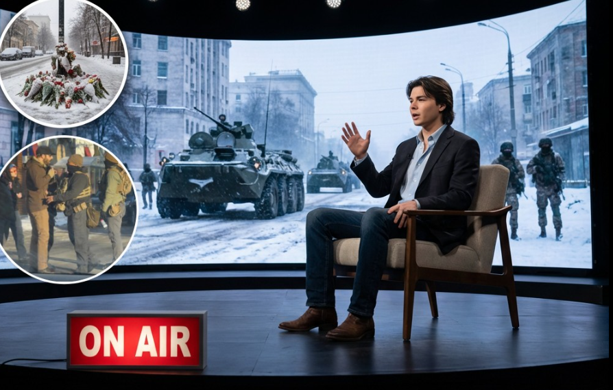 The words landed heavily in the broadcast studio, spoken slowly and deliberately by country music star John Foster as live footage of Minneapolis played on the monitor behind him. Snow whipped sideways across Nicollet Avenue, coating armored vehicles in a dull white sheen. National Guard troops stood motionless in the cold, their breath rising in thick clouds, the silence of winter clashing with the tension of a city on edge.