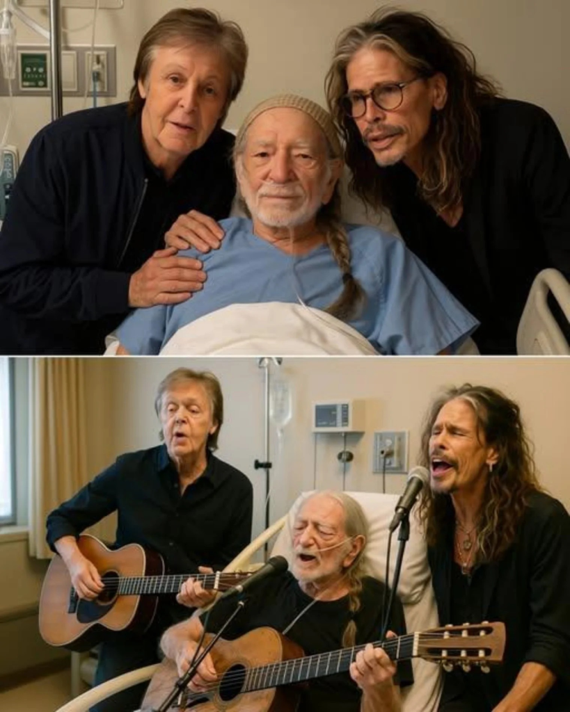 News of the visit leaked hours later. Fans lit up social media with shock and sorrow. Millions followed updates on Willie’s condition with trembling hope. The image — though never photographed — of Paul McCartney and Steven Tyler holding Willie Nelson’s hands spread across the internet like a modern legend.