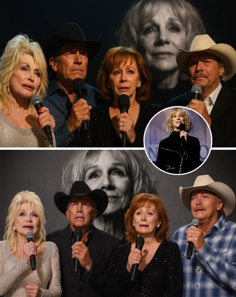 At the Grand Ole Opry, under golden lights and tear-filled eyes, four living legends stood together and turned farewell into forever. Dolly’s honeyed comfort, Reba’s fierce fire, George’s timeless warmth, and Alan’s steady strength wove into a harmony that carried Jeannie Seely not just out of this world, but into the eternal hall of memory.