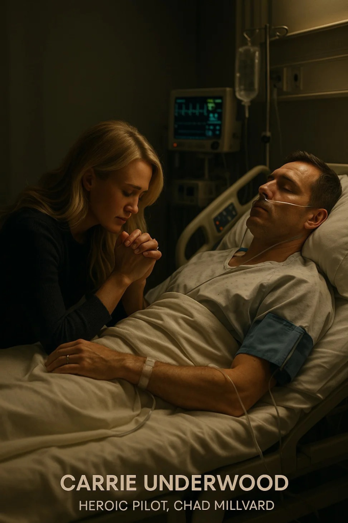 Inside the room, Carrie remained kneeling. She held his hand — a hand that once guided a helicopter through chaos — and softly began to hum a familiar tune. It wasn’t one of her chart-toppers. It was “Jesus, Take the Wheel.”