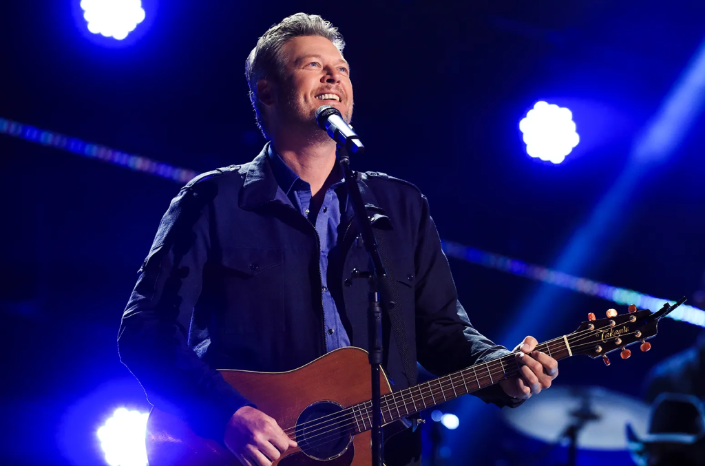 As Blake paused between songs, he stepped forward into the glow of the spotlight, squinting toward the back of the venue. A hush settled over the crowd as he adjusted the strap of his guitar, leaned into the microphone, and with a gentle smile said: