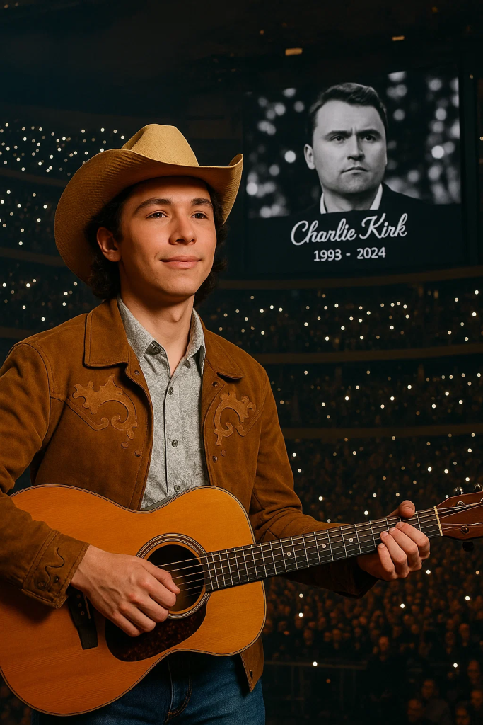 Some in the crowd bowed their heads. Others clasped their hands, holding onto the moment as though afraid it might break. Many knew who the song was for. Charlie Kirk—a man whose faith, fire, and fearless heart had inspired millions—was gone, and John Foster had come to say goodbye the only way he knew how: through song.