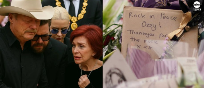 Family members sat in the front pew: Sharon Osbourne, stoic but pale; Kelly and Jack Osbourne, both visibly shaken; and a few close friends from a lifetime in music. Black Sabbath’s surviving members were present, their expressions a mix of grief and disbelief.