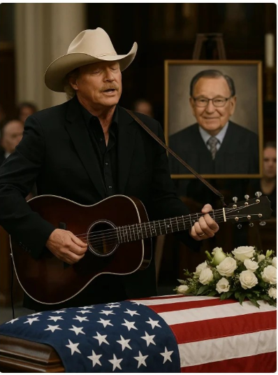 The church was silent, its vaulted ceiling filled with the stillness of grief. Candles flickered, stained-glass windows bathed the pews in muted light, and at the center rested the casket of Judge Frank Caprio, the beloved jurist whose courtroom kindness touched millions. The crowd had gathered to remember a man who made justice humane. But few expected what came next: Alan Jackson, the country music legend, stepped to the altar with guitar in hand.