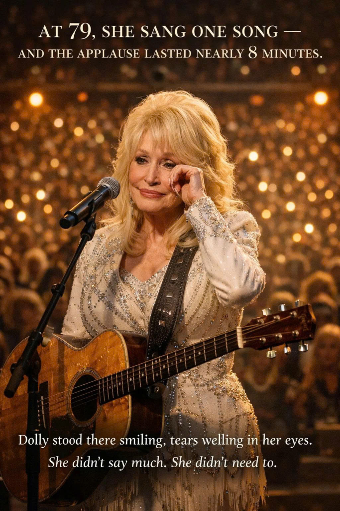 When the final note faded, Dolly lowered her guitar slightly and lifted her eyes.