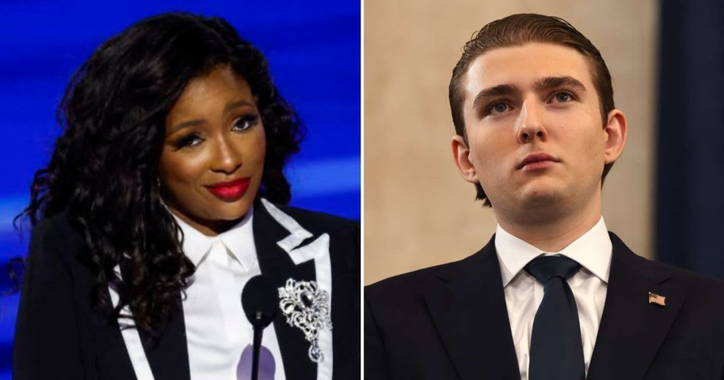Washington, D.C. — A televised political forum erupted into one of the most talked-about moments of the week after a sharp exchange between Barron Trump and Representative Jasmine Crockett shifted from policy to personal in a matter of seconds. What followed was not a shouting match, but something far more consequential: a measured response that flipped the narrative and left the studio in stunned silence.