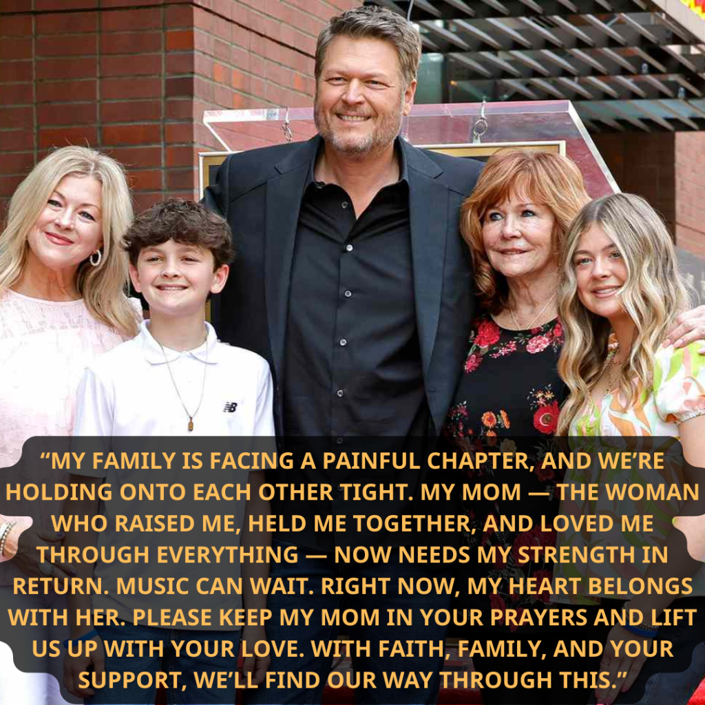BLAKE SHELTON’S HEARTBREAKING FAMILY NEWS: COUNTRY STAR CANCELS ALL REMAINING SHOWS THIS YEAR — FANS STUNNED AS HE REVEALS HIS MOTHER’S SERIOUS HEALTH STRUGGLE