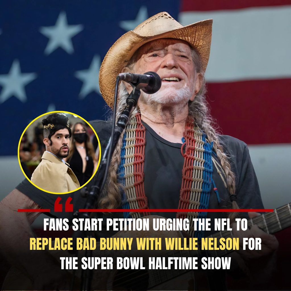 BREAKING: The Petition That Shook the Super Bowl — Fans Demand Willie Nelson Take the Stage Over Bad Bunny
