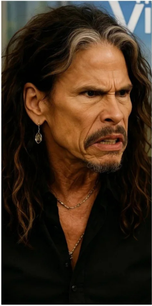 In the center of it all stood Steven Tyler — no longer smiling, no longer playing along. His trademark grin was gone, replaced by a raw, fiery expression that spoke of decades spent battling through fame, addiction, judgment, and the brutal side of the entertainment world.