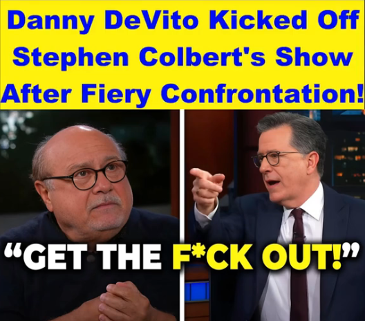 In a shocking and unprecedented moment on late-night television, veteran actor and beloved comedian Danny DeVito was reportedly kicked off the set of The Late Show with Stephen Colbert after a fiery and unfiltered confrontation with host Stephen Colbert.