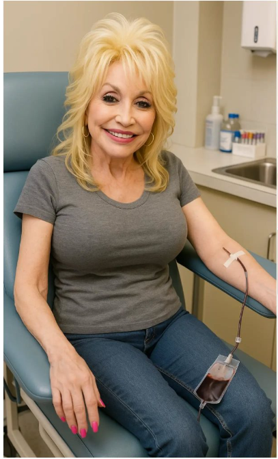 As the letter circulated, one image lingered: Dolly Parton sitting quietly in a hospital chair, offering her arm, watching her blood flow into a bag that would one day save a child’s life.