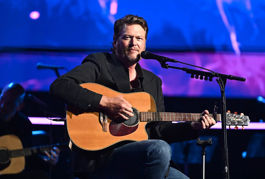 Blake nodded to the band to stay quiet. He picked up his acoustic guitar, resting it against his chest like a familiar friend. There was no rush. No pressure. No performance posture.