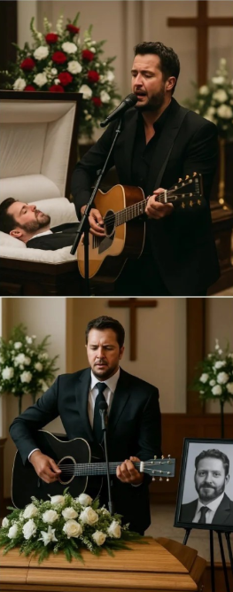 Luke Bryan stood up slowly. No fanfare, no nod from the crowd — just the sound of his footsteps on the carpet as he made his way to the small stage set up beside Brandon’s casket. He didn’t carry a guitar. He didn’t even glance at the sheet of lyrics resting on the podium.
