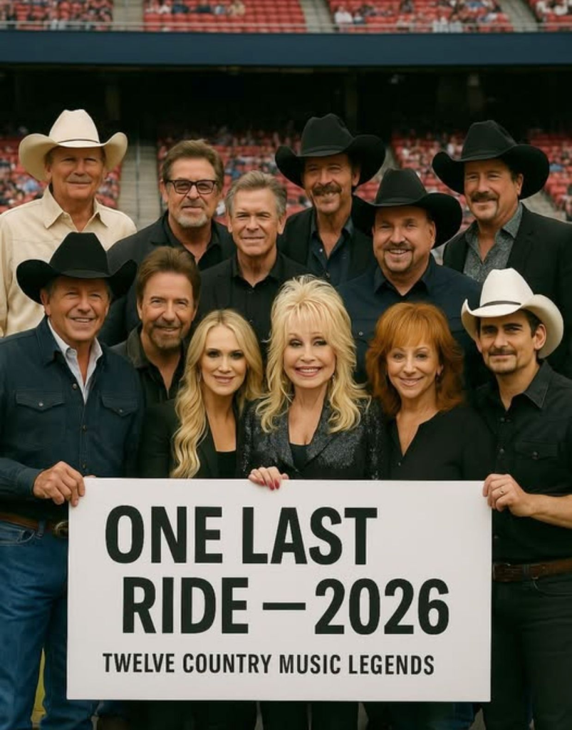 In the world of country music, rumors fly fast and legends loom large — but none more so than the speculated “One Last Ride” tour of 2026, which has been whispered about, shared in social media threads, and posted on fan pages: twelve of country’s most revered legends stepping onto one stage, united for a farewell journey that would stir souls and mark the end of an era. Names bandied in these conversations include George Strait, Brooks & Dunn, Carrie Underwood, Alan Jackson, Vince Gill, Dolly Parton, Garth Brooks, Reba McEntire, Brad Paisley, and more — a lineup so dreamlike that every detail fans imagine seems to come straight from a cherished fantasy.