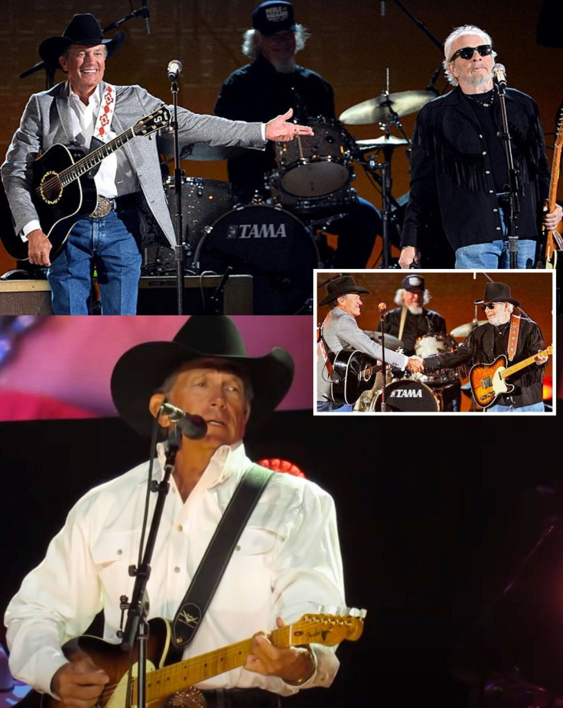 George Strait and Merle Haggard — country music’s living legends at the time — walked onto the stage not with the fanfare of showmen, but with the quiet presence of men who had lived the lyrics they sang.