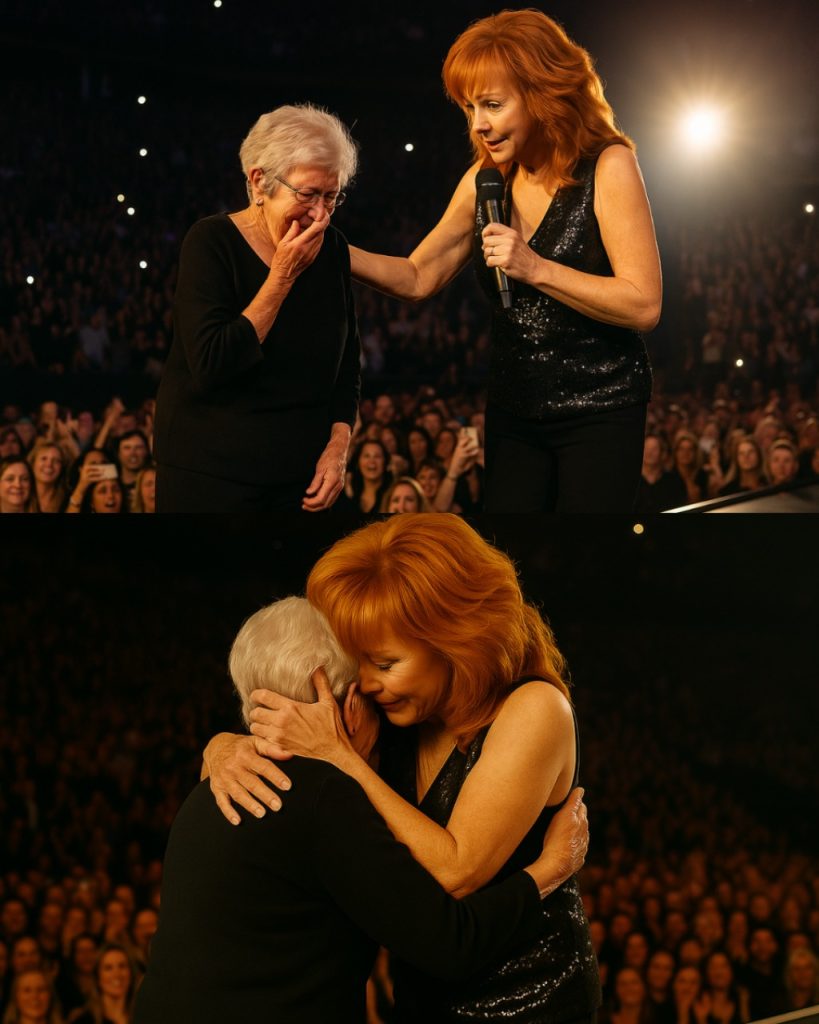 Reba reached out her hand. The woman’s eyes widened, and the arena seemed to shrink, as though the 60,000 surrounding souls no longer existed. Slowly, gently, Reba led her into the spotlight.