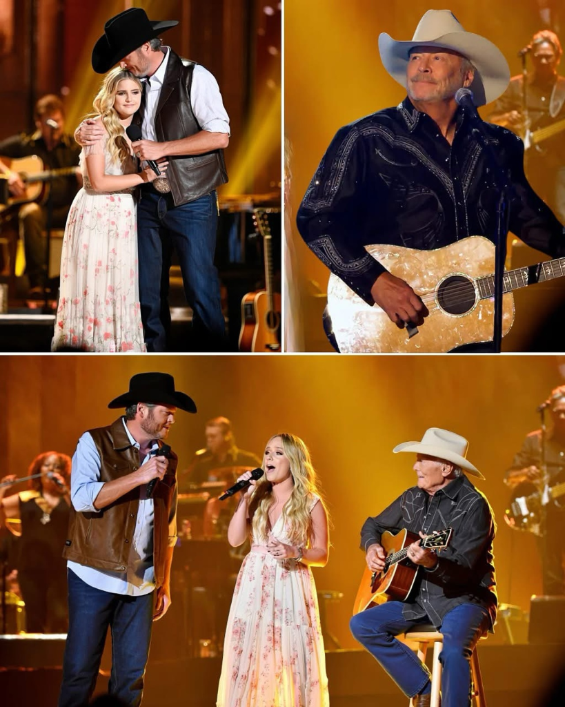 At center stage were two country music legends — Blake Shelton and Alan Jackson — but it was Ali Jackson Bradshaw, Alan’s daughter, who transformed the night into something sacred. In a heartfelt and emotionally raw performance, she stepped into the spotlight, not as a celebrity, not as an heir to a legacy, but as a daughter — nervous, trembling, yet impossibly brave.