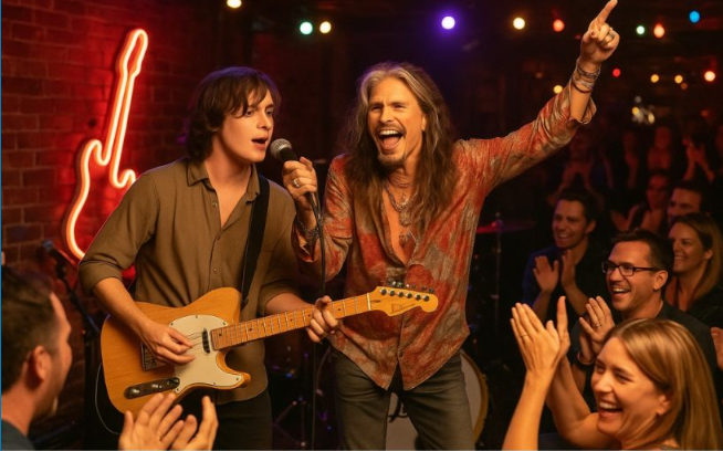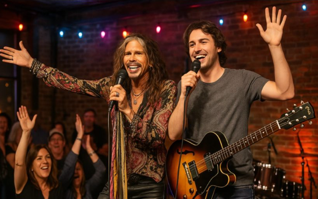 On a quiet evening in Nashville, one such moment unfolded. Aerosmith’s Steven Tyler, the leather-lunged, scarf-draped frontman who spent decades screaming anthems into the rafters of the world’s largest arenas, walked into a small bar not as a rock god, but as an uncle — there to support his nephew’s gig.