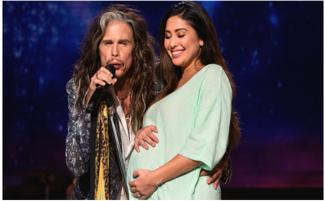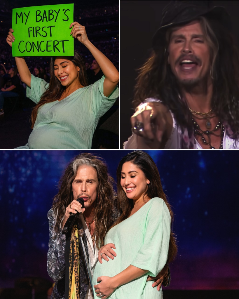 He reached down, took the woman’s hand, and gently pulled her onto the stage. The spotlight followed. Fans held their breath. With a weathered palm — the same hand that has gripped microphones, written lyrics, and signed autographs for generations — Tyler pressed softly against her belly.