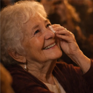 In the front row — just beyond the edge of the lights — a single face had caught her attention. Not waving. Not shouting. Just standing there, still, overwhelmed, holding something heavy in their eyes.