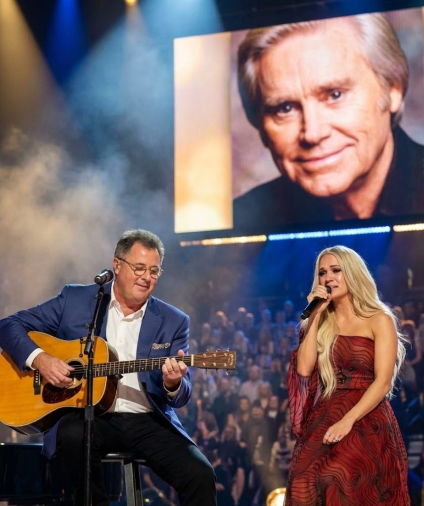 As Vince and Carrie sang, it felt as though George’s voice—weathered, trembling, unmistakable—hovered just beyond hearing. Not competing. Not replacing. Simply present.