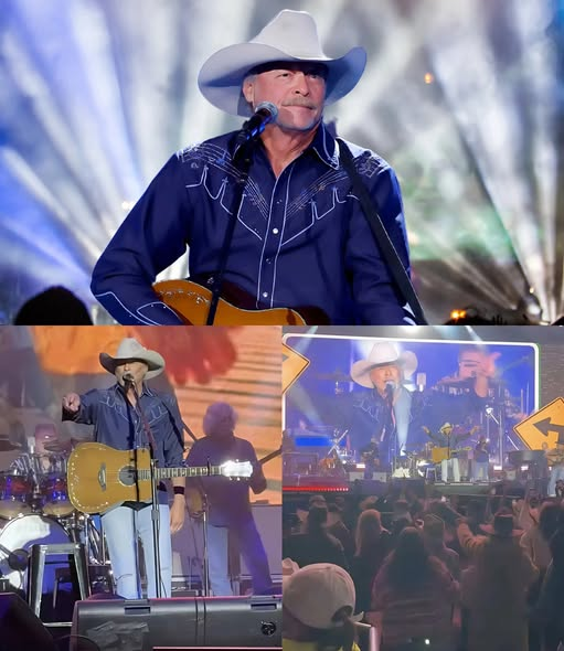 Because on that stage, under those fading gold skies, Alan Jackson walked out slower than usual — slower than any fan had ever seen. He wasn’t smiling. He wasn’t waving. His white hat sat low over his eyes, and he carried something deeper than fatigue.