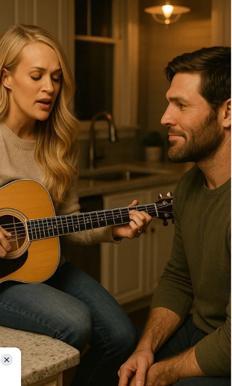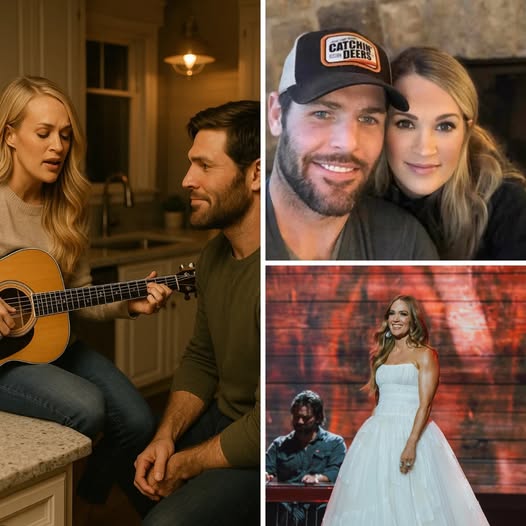 It wasn’t under the bright lights of an arena. There was no stage, no band, no spotlight. Just the soft hum of a refrigerator, the faint smell of coffee, and a single acoustic guitar leaning against a kitchen counter. Late one night in her Tennessee farmhouse, Carrie Underwood began strumming a melody she never meant for anyone to hear — a simple song written for one person: her husband, Mike Fisher.