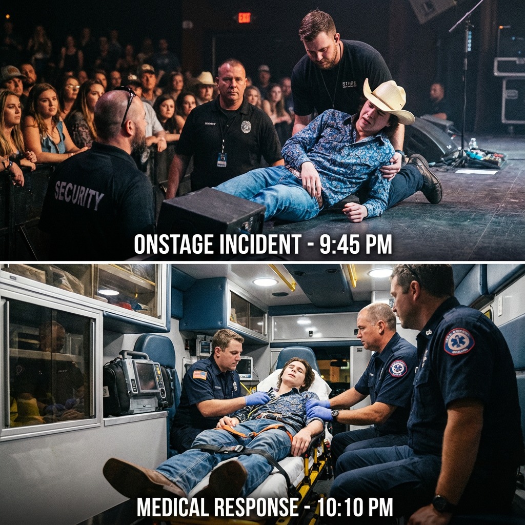 One moment, the Nashville arena was alive with sound — thousands of fans on their feet, singing every word, phones raised to capture what felt like another unforgettable night. The next, the lights dimmed, the band froze, and panic rippled through the crowd as John Foster, one of country music’s most beloved voices, collapsed onstage mid-performance.