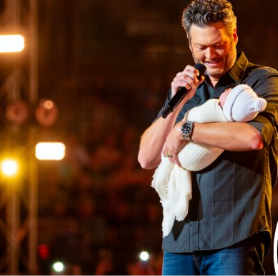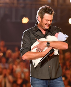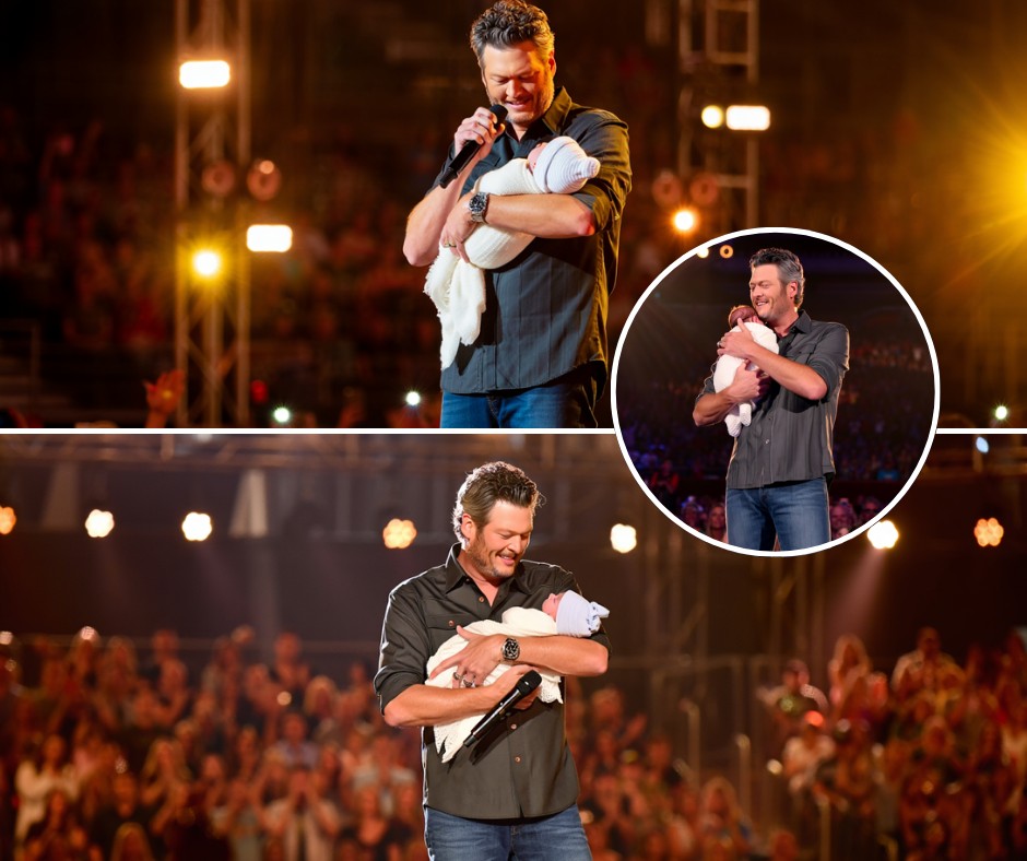 Blake Shelton — the towering Oklahoman, voice as rugged as the red dirt back home, and a star who has spent decades on the front lines of country’s evolution — walked onto the stage not with a guitar, not with a microphone, but with something infinitely more fragile in his arms: his newborn daughter.