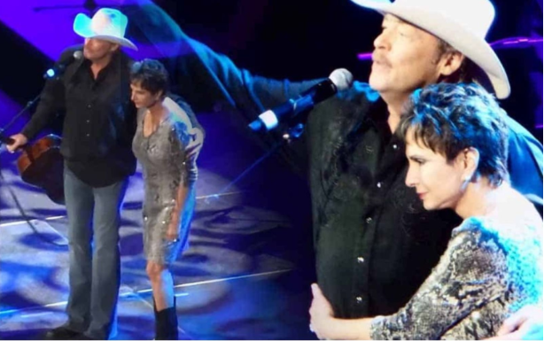 There are nights when Nashville feels big — roaring, electric, wild. This was not one of those nights. As Alan and Nancy reached center stage, the room shrank to something intimate, almost fragile. The kind of stillness that only happens when everyone can feel the same memory tugging at their hearts.