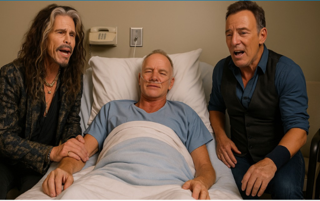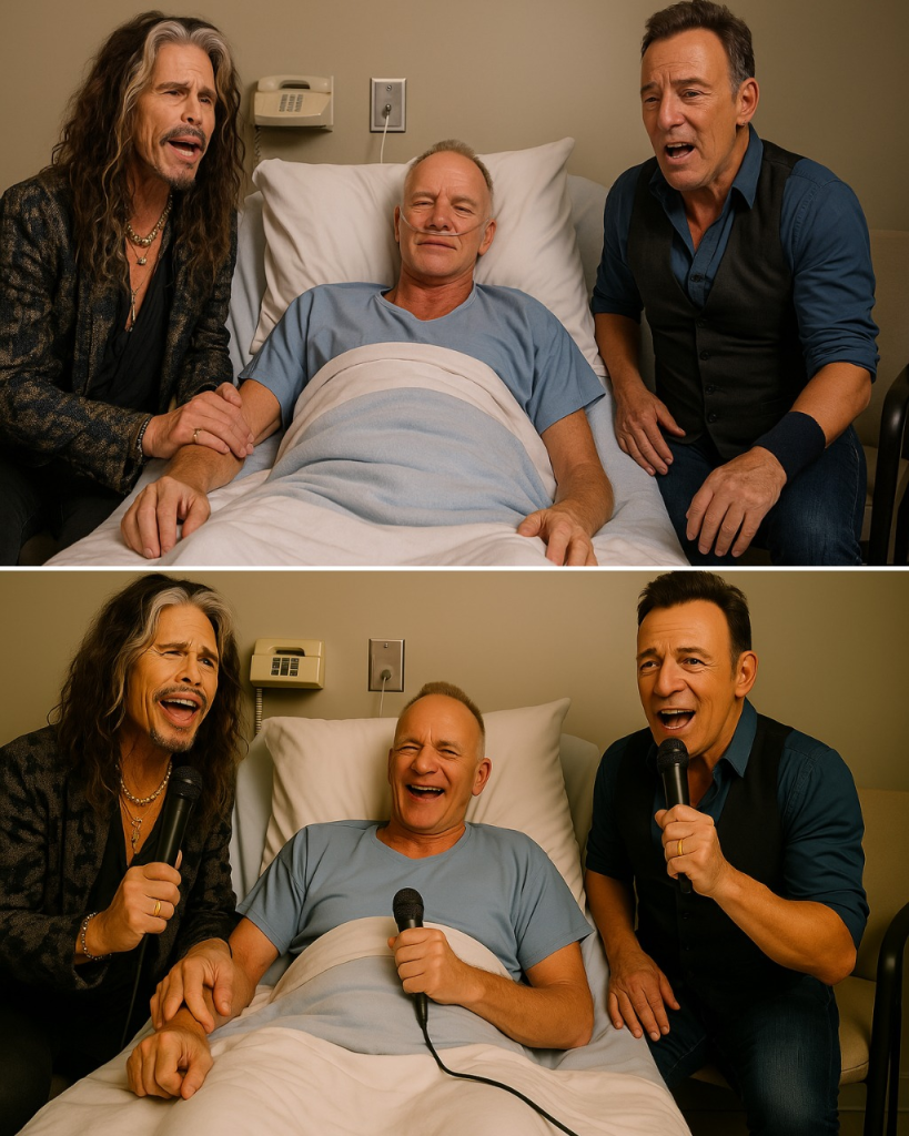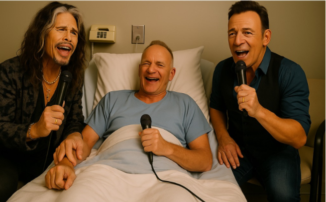 In the world outside, Steven Tyler, Bruce Springsteen, and Sting were rock icons — names that filled stadiums and record books. But in that small, sterile room, they were just three men with guitars, playing for the joy of it.