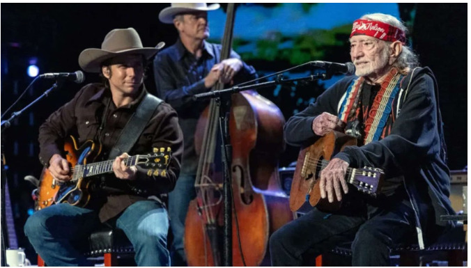The lyrics, written more than half a century ago, carried a new weight. Willie sang softly, Dylan answered, Lukas stood between them. Three generations — a grandfather, a son, and a ghostly reminder of what music can do when it refuses to fade.