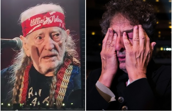 The crowd erupted as another figure appeared, almost like an apparition from the past. Bob Dylan, the man who had stood shoulder to shoulder with Willie at the very first Farm Aid in 1985, walked slowly onto the stage.